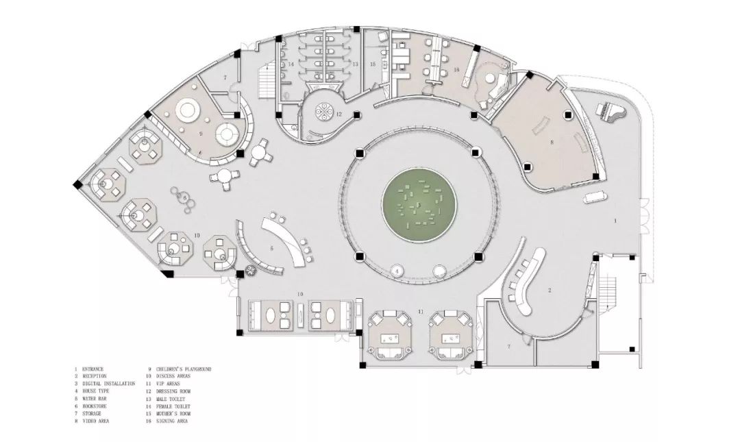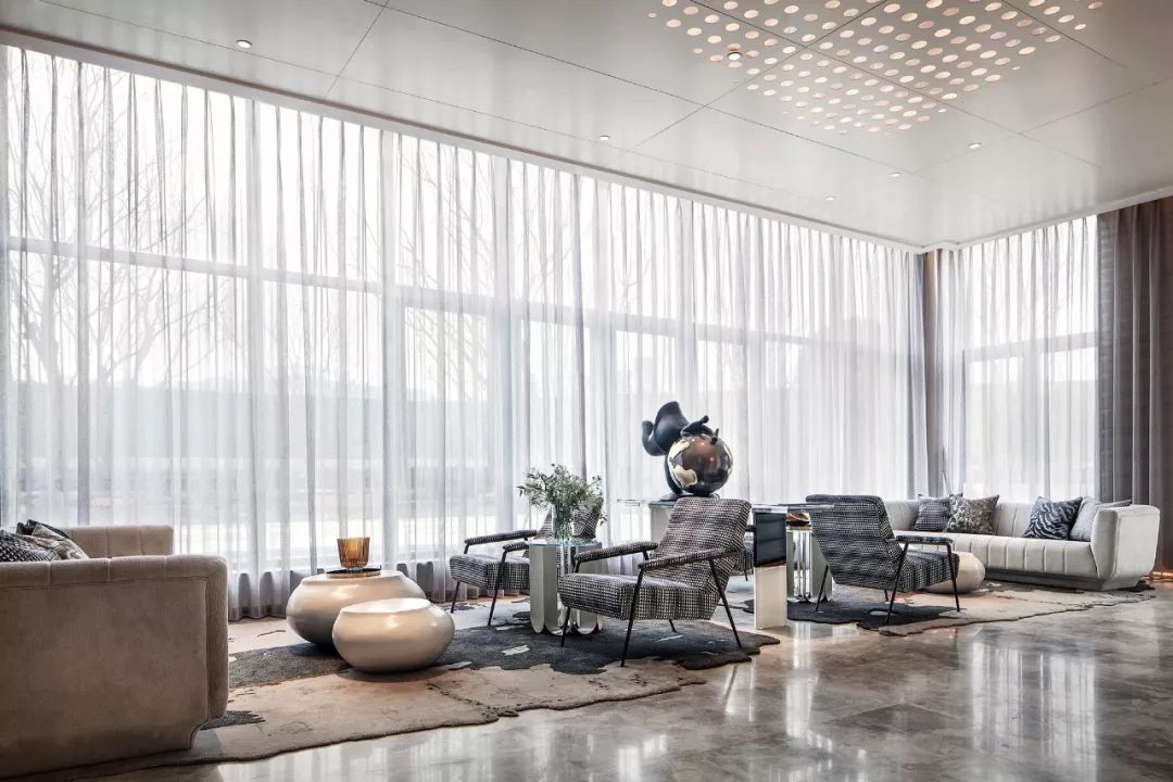 洽谈区摒弃掉传统桌椅的简陋形式,而是在肌理意境艺术的茶几,趣意盎然的沙发和有力的单椅围合之下,营造出舒适与惬意的氛围,销售中心成为更特别的室内场景。