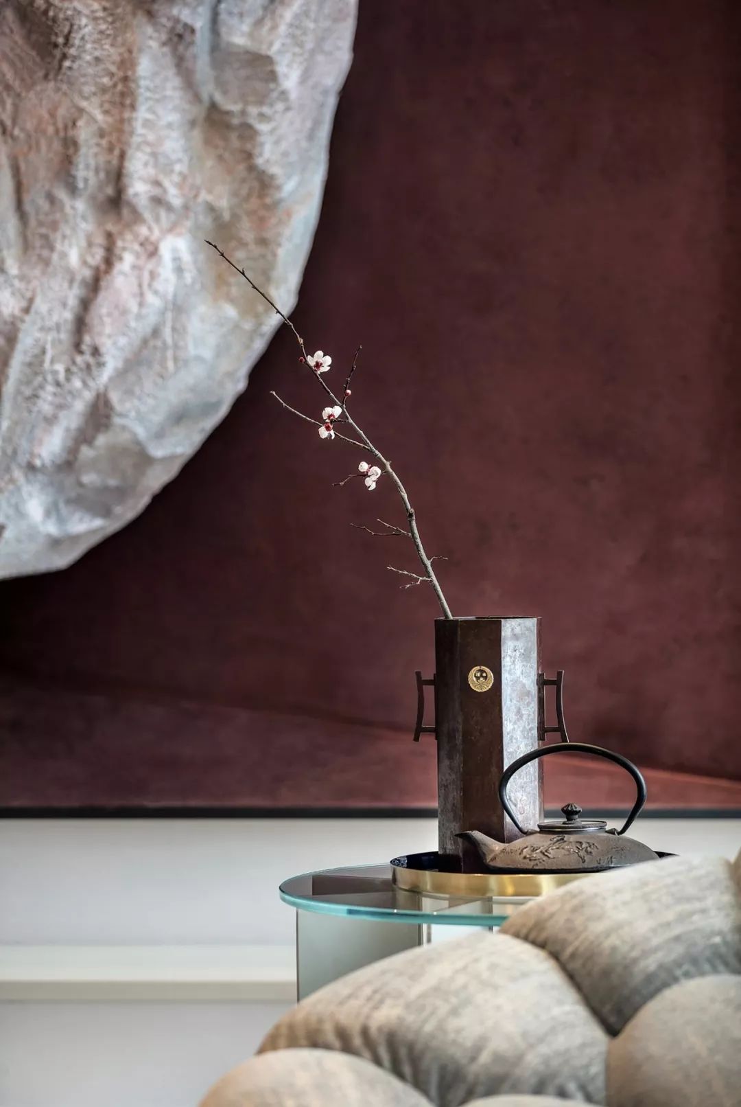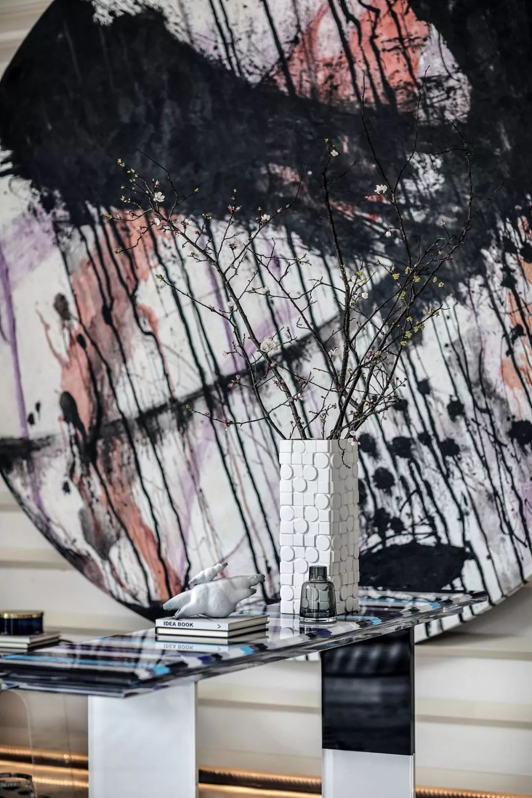 无处不在的东方,是SCD从未丢掉的精神美学, 悠悠雅致,深远而含蓄,在任何时候都能成为东方美的典范,水墨自成的肌理和数字化融为一体的美感,带有历史印迹的铁艺器皿中一枝悠悠绽放的桃花,更像是空间闪亮的眼睛,美的明动而透彻......