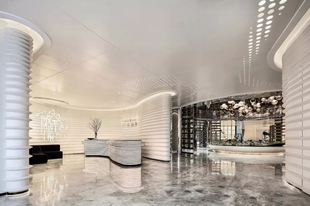 SCD运用数字化技术,以圆弧线的艺术形态,打破常规递进的空间关系,将“S”流线贯穿,让接待区成为时尚与科技交织,文化与艺术互文的独特场景,以创新和不拘常态的设计哲学来表达重庆这座城市的现代和未来。