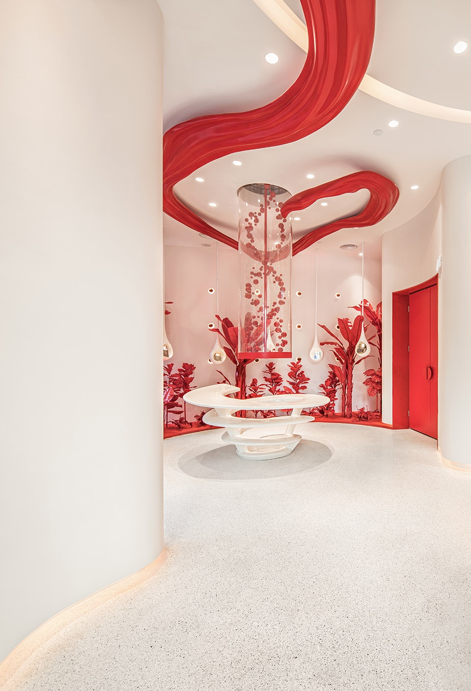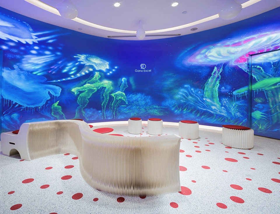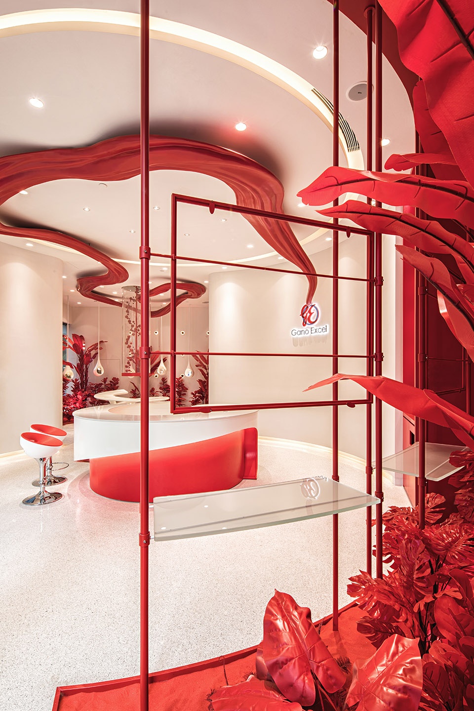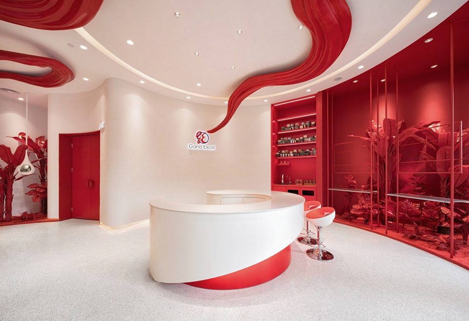 作为来自马来西亚的灵芝产品品牌Gano Excel,我们把灵芝生长的环境、传递健康的理念与创意结合,以全新颠覆的形象和方式,带给展示空间的全新体验。设计灵感来源“灵芝”本身,无论是空间平面上的规划,亦或主色调定位、艺术装置等,都是基于热带雨林的植物精灵——灵芝。灵芝袍子粉的红色、热情活力的红色作为主色调,空间“红”与“白”的交融、相互映衬,使其平衡、干净而纯粹。