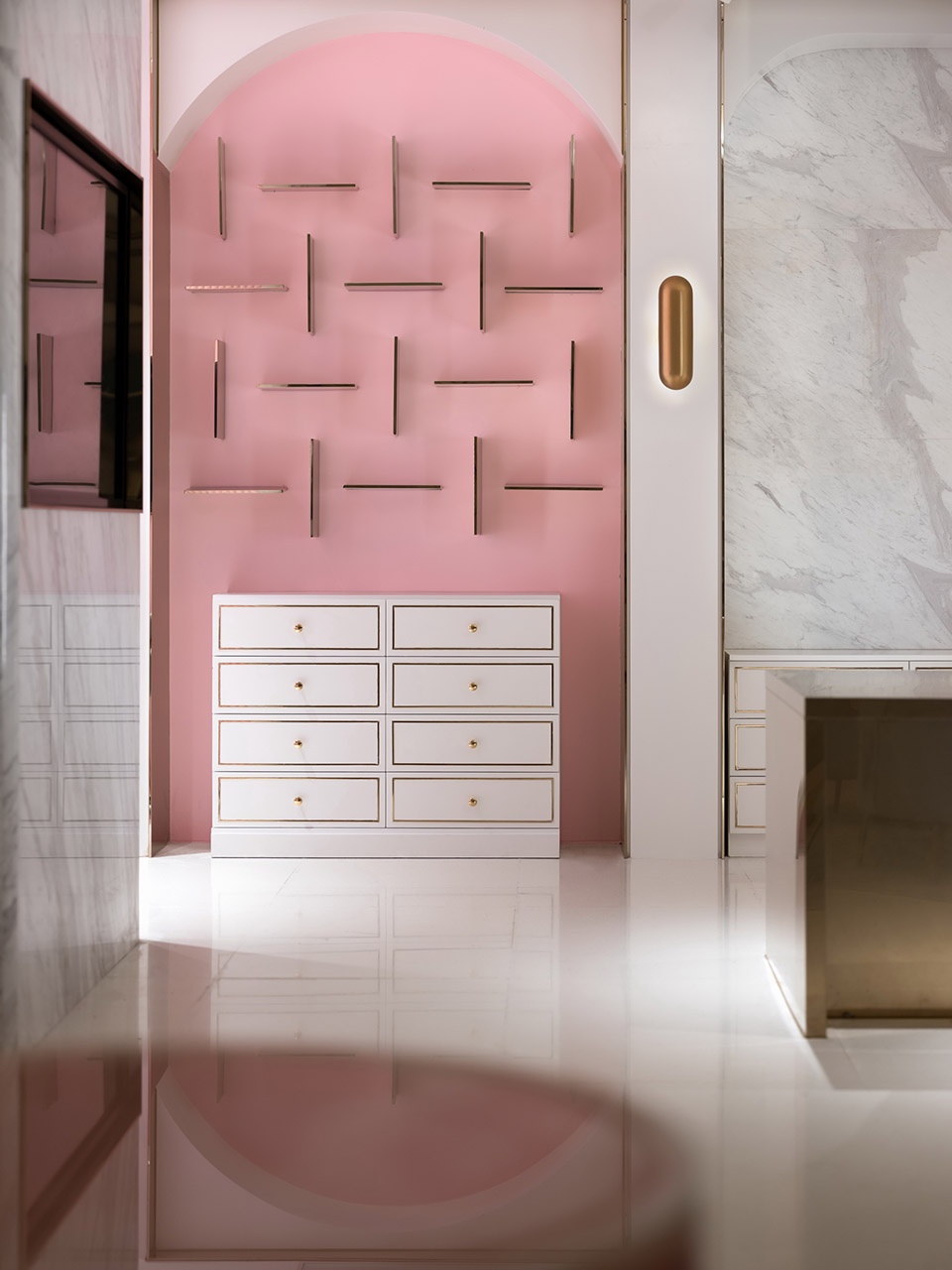 粉色纯天然大理石,如同法式盛宴里可口的甜点,甜而不腻,点缀着整个氛围,制造出浪漫的清新氛围。▼粉色纯天然大理石,如同法式盛宴里可口的甜点,点缀着整个氛围