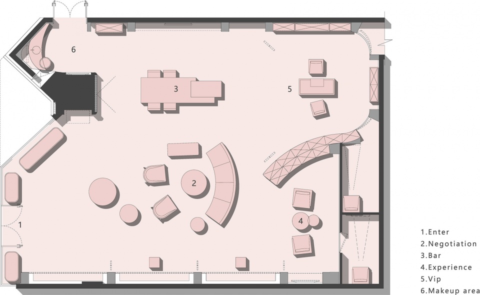 DREAMAKER中文为“梦想成真”,系徐冬梅女士(广州东方眼镜连锁企业有限公司董事副总经理)深耕眼镜行业数十载后,打造的全新商业品牌及商业模式。DREAMAKER是国内首家以客厅为背景的眼镜零售体验店,以温馨的客厅,优雅的书房,具有创意的吧台,让客人在家一般舒适的,具有艺术设计和品牌文化的全新购物空间里,感受到视力保健及眼镜美学的专属定制服务。这样的理念,颠覆了眼镜行业的传统经营模式,视客户的购买体验为第一位,打破了顾客与商家间冰冷的销售关系。▼空间分析