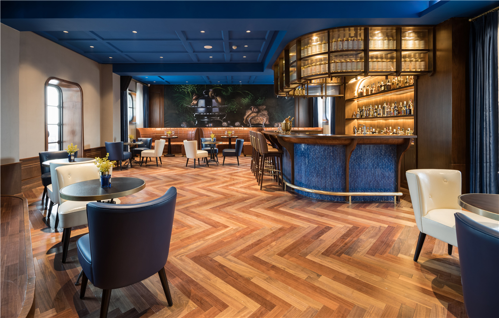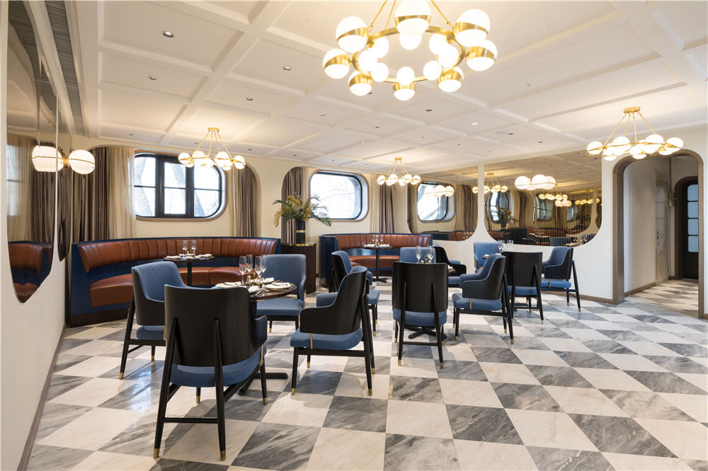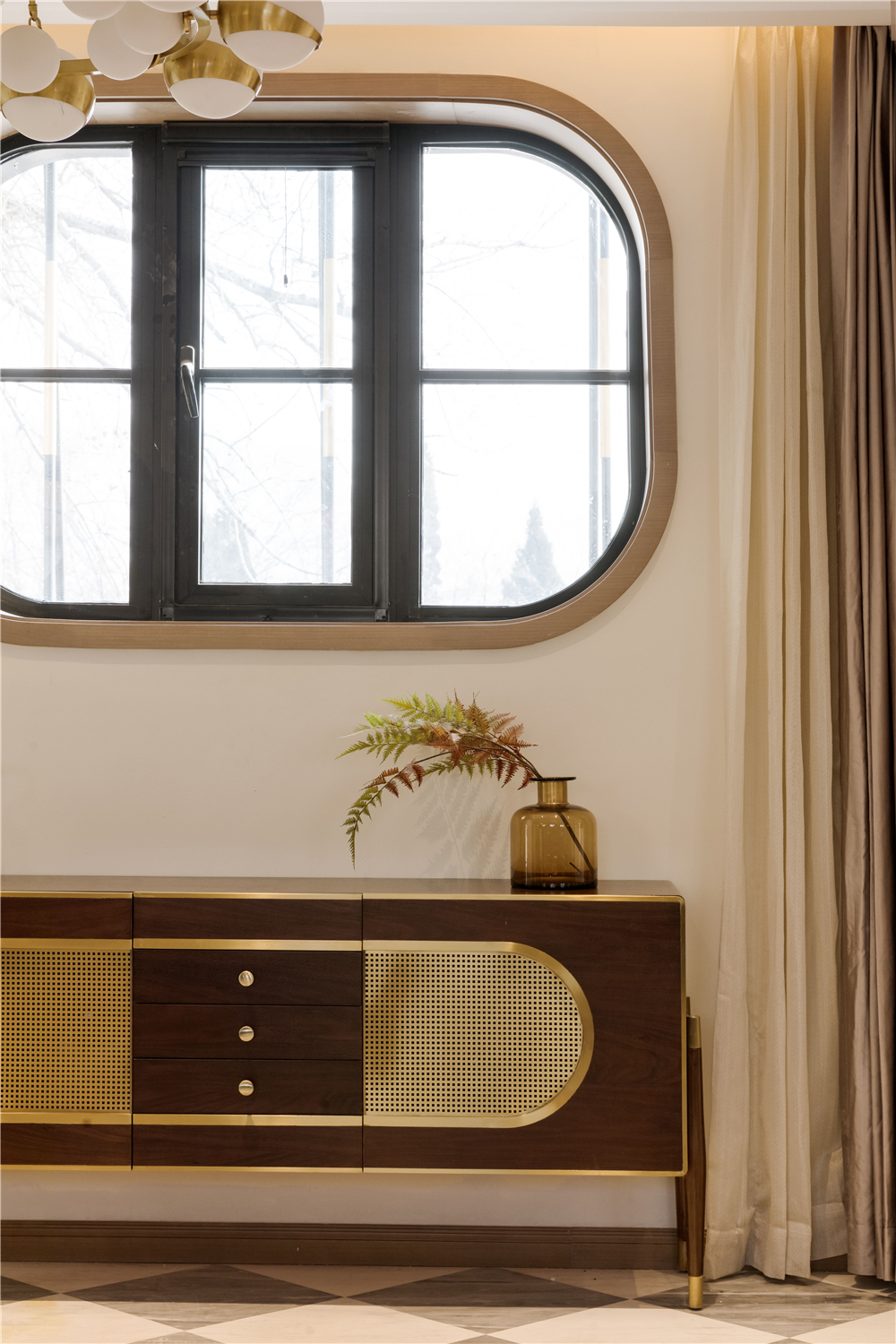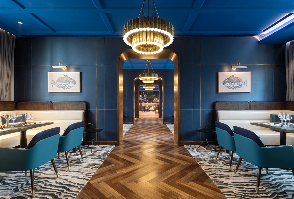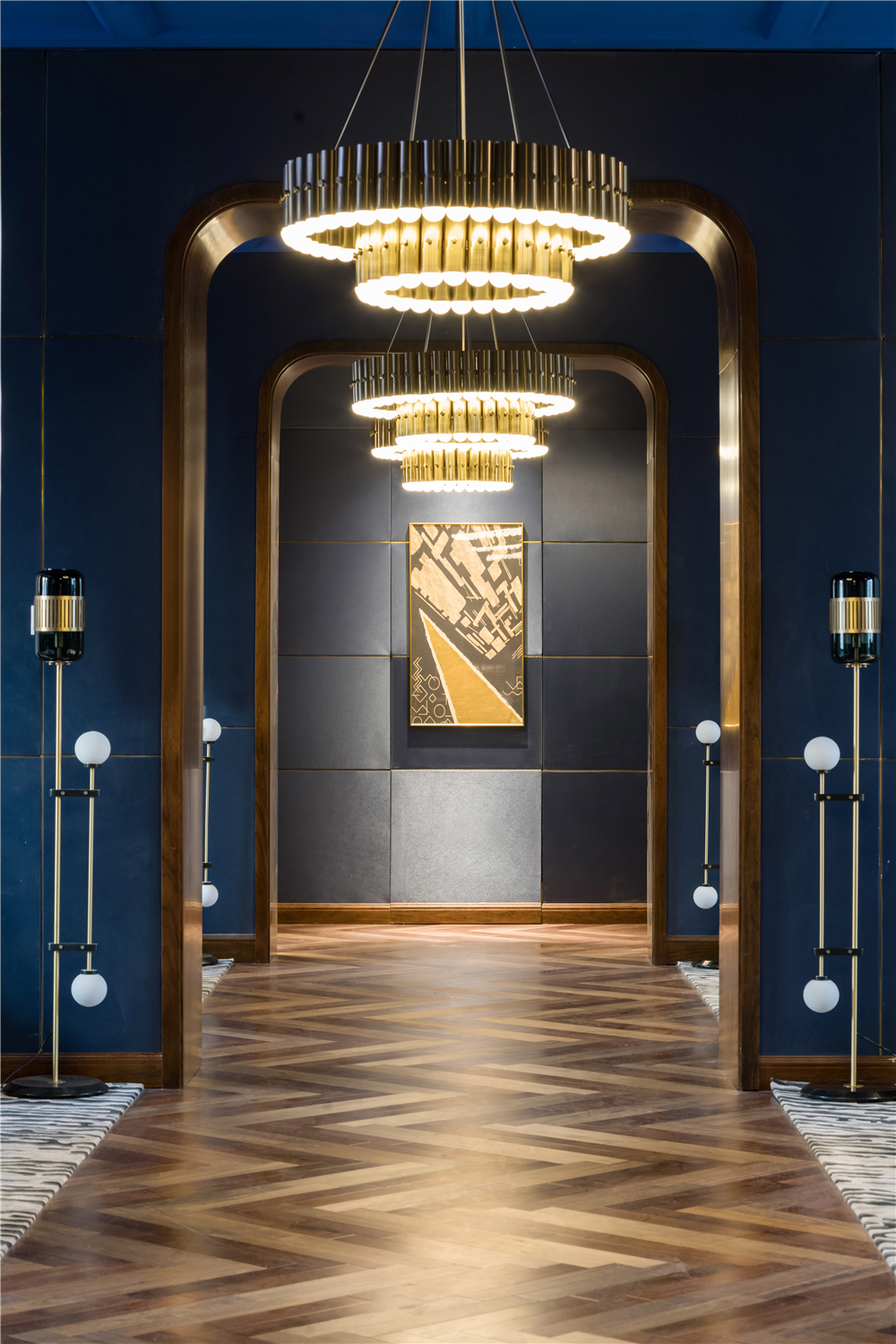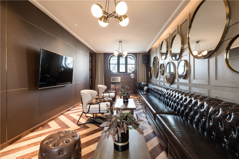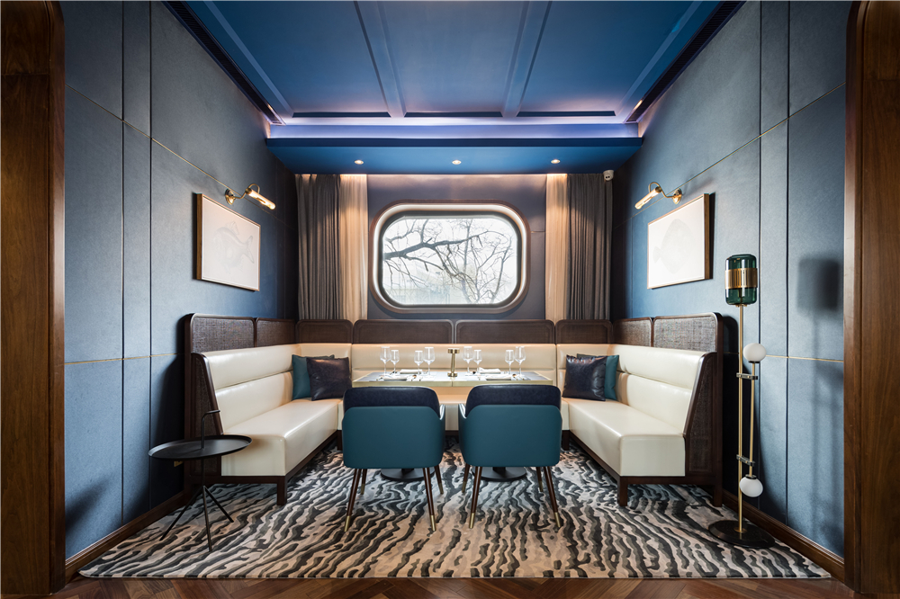 酒吧窗户采用轮船弧形船窗造型,复现当年秦港之风貌,重塑海港码头文化。特别定制的甲板壁灯以及黄铜材质金属构件的搭配,都与空间达成了某种共契。艺术品陈设更为整体空间赋予了弥珍之美。