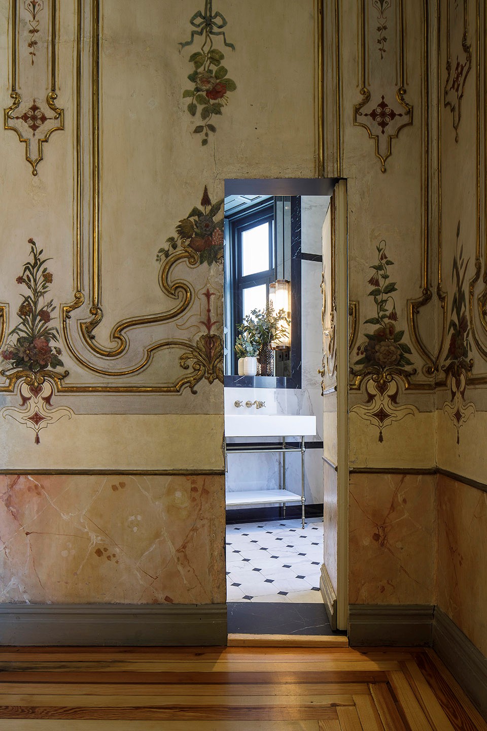 一条古老的行车道引导着客人,线脚和镶嵌装饰凸显出精致的入口通道,后部通道直接通向内部庭院。