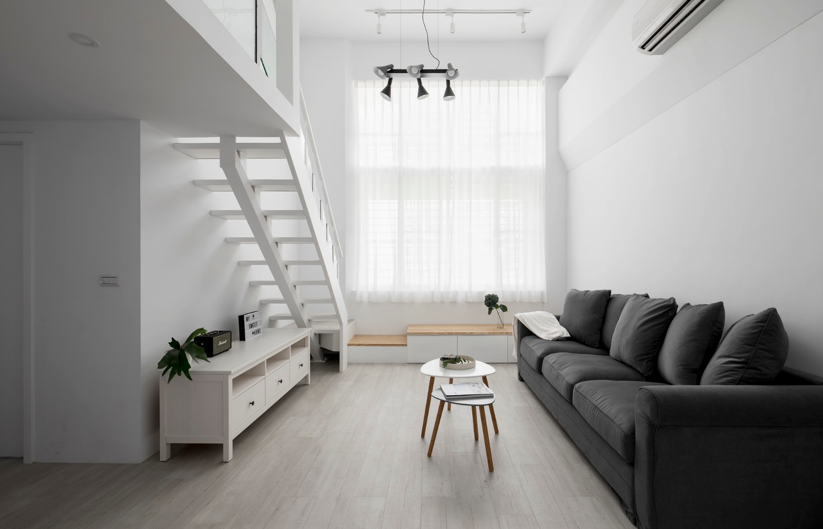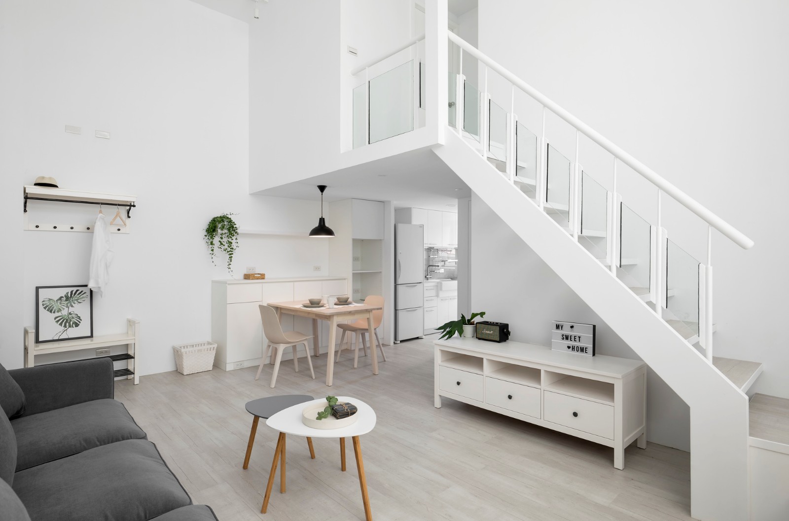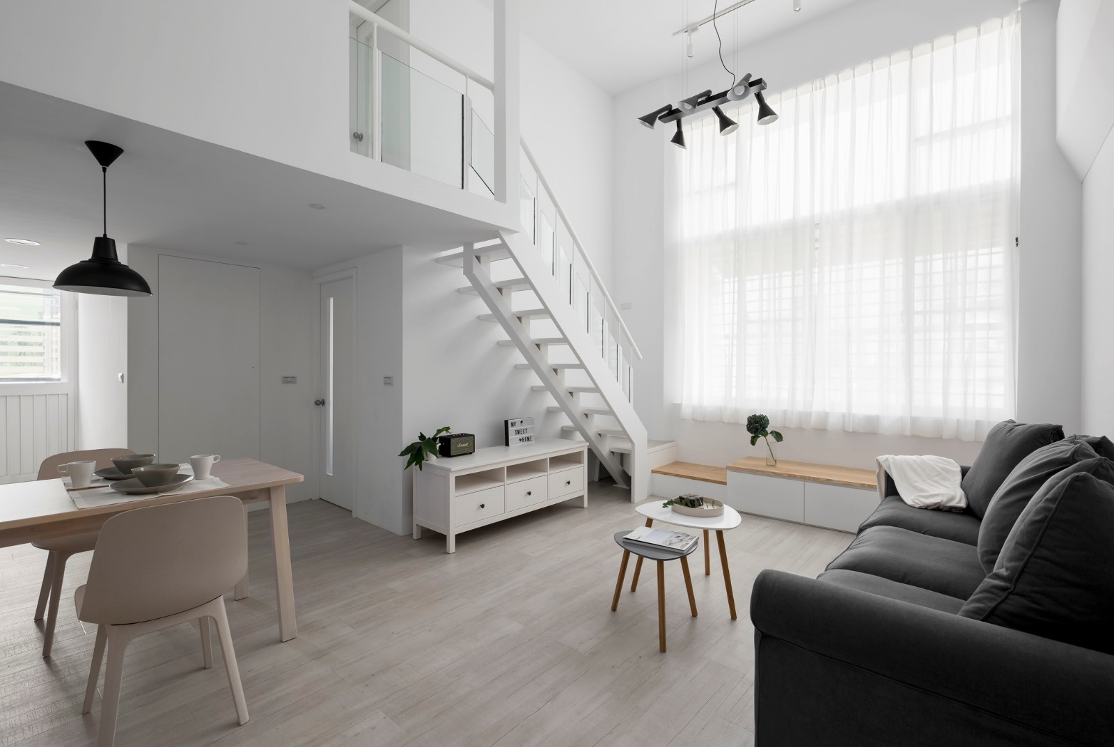 挑高的复层总给人开朗灿烂的印象,端一杯咖啡窝在沙发上,就算什么都不想,只是发呆,也能幸福地闲耗整个下午,所谓家就是让人如此舒适自在的地方。