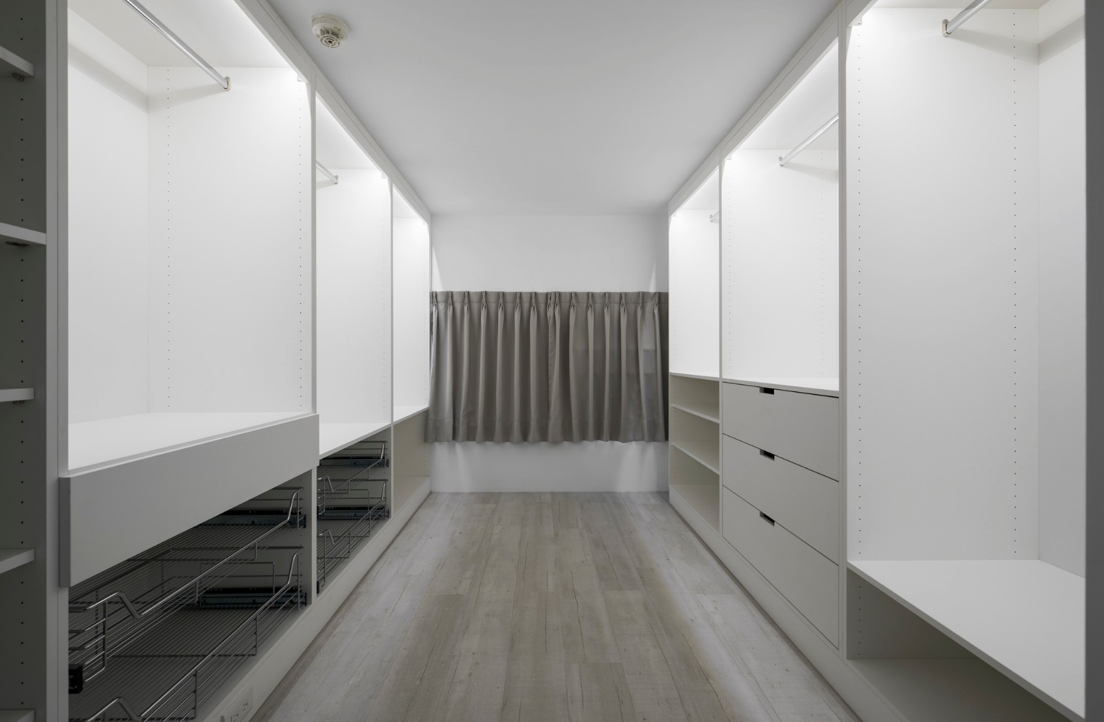 业主爱极白色,几乎目光所及的壁面皆白,白色从柜体、梯体、门等漫布、延伸开来。犹如生活的布景,室内演绎的是日常,是彼此亲密的情感,是归属、是牵绊。含蓄内敛的文化底蕴,不多不少,在一片洁净无暇中绽放开来。