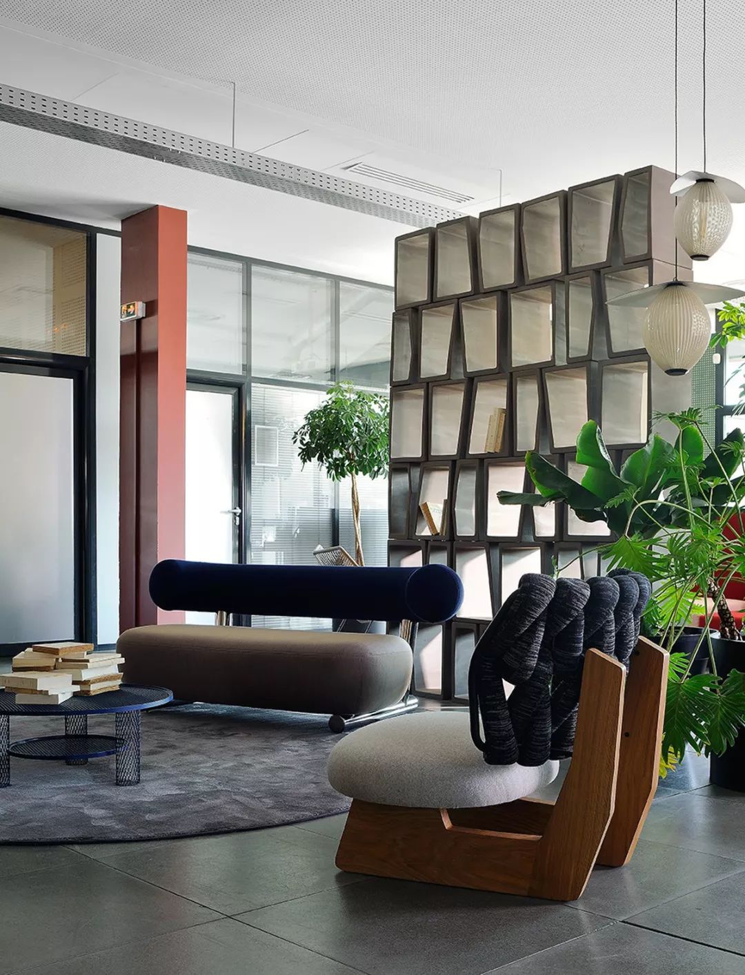 这是Claude Cartier不久前完成的一个办公项目设计,通过不同家具的组合分割空间,家具的形态与颜色,以及不同壁纸、墙漆的选用,都体现了Claude Cartier一贯的设计风格。