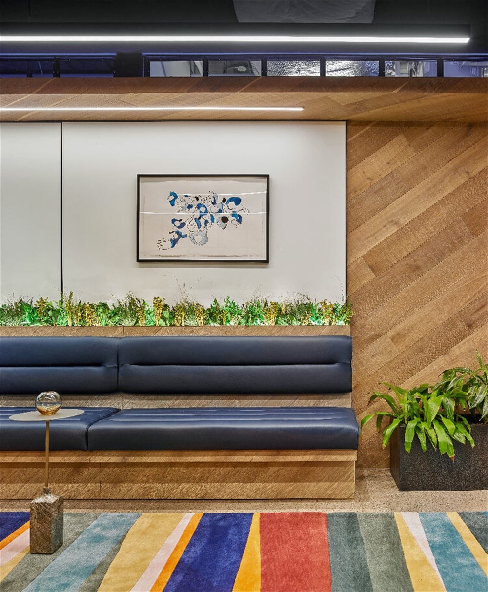整个空间的设计是为了促进社区参与度和社会化,这是健康和幸福的一个重要方面。将自然的木材元素、艺术品和绿色植物引入各个区域,提供一个以人为中心的空间,给人以家的感觉。