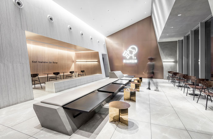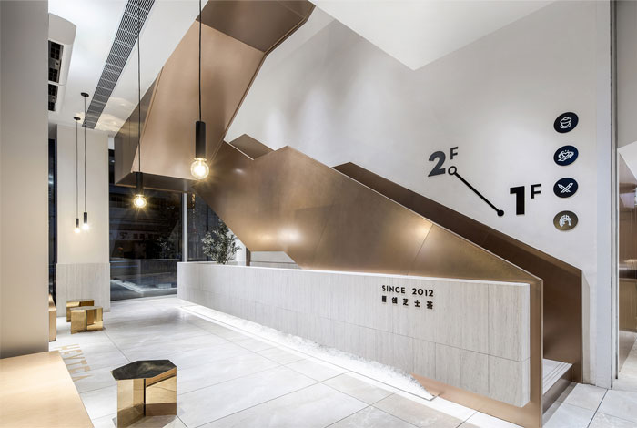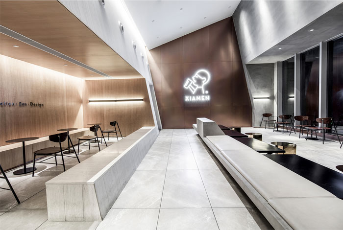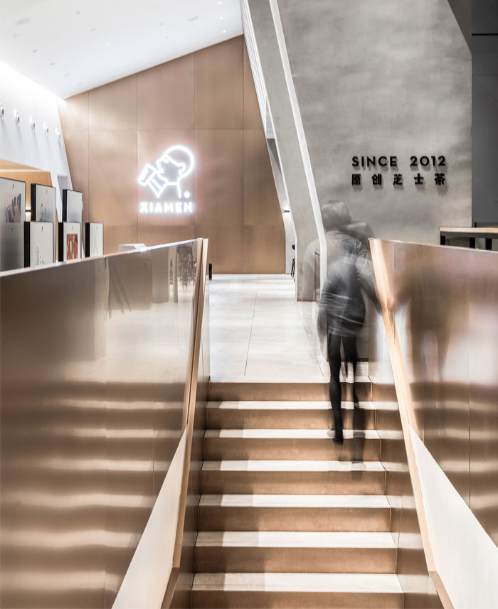 该项目位于厦门岛的商业中心,是中国领先的茶饮料品牌水茶的旗舰店。根据开放式两层建筑空间的特征,MOC DESIGN OFFICE在其中创建了自下而上的倾斜顺序,从而为城市生活和社交活动提供了各种可能性。
