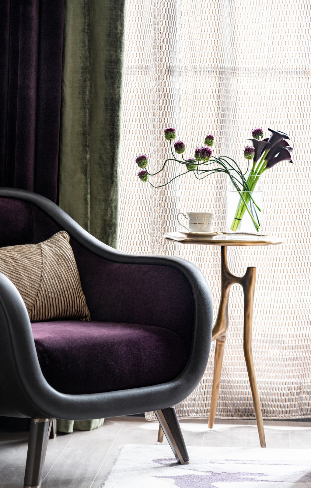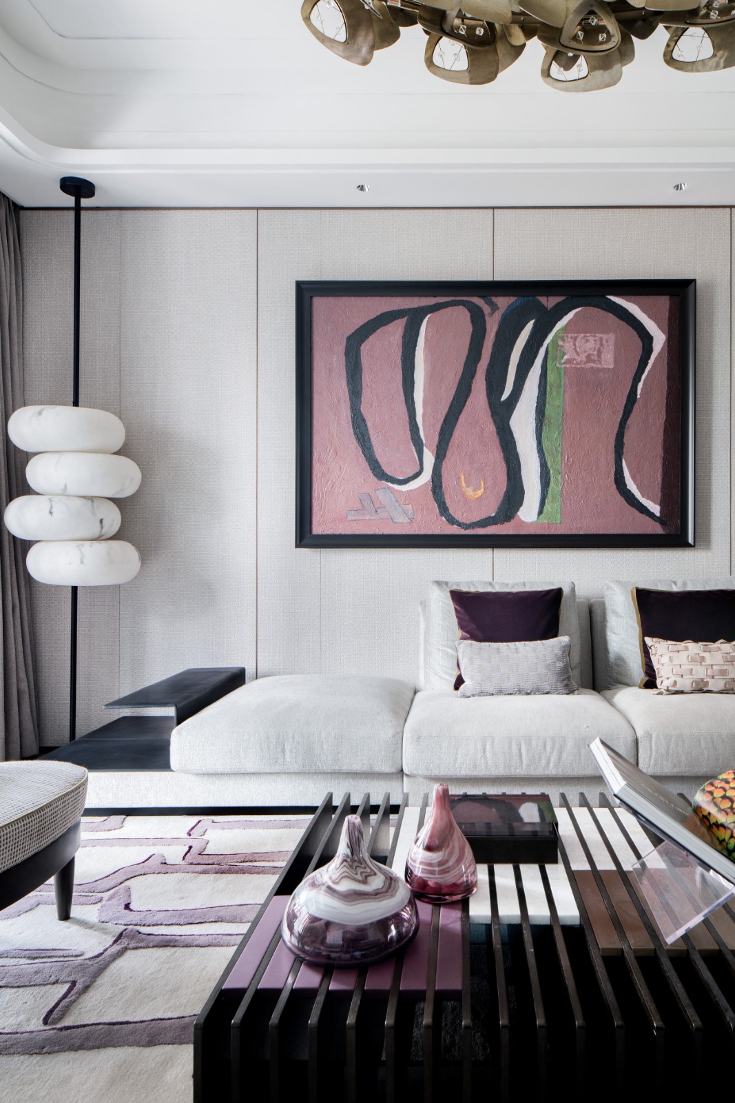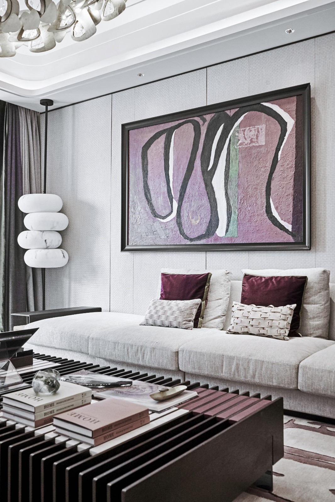 当我们进入这个空间时,捉摸不定眼前是过去还是未来,那是一种耐人寻味的时空理念。WJID用极具上海风情的粉紫色作为空间主基调。设计中将室内空间视为一张三度空间的抽象画,从上层的墙饰,中层的沙发,到透视茶几,展现一种循序渐进的,有如东方水墨式的层次美学。