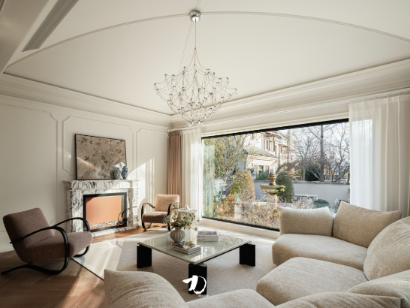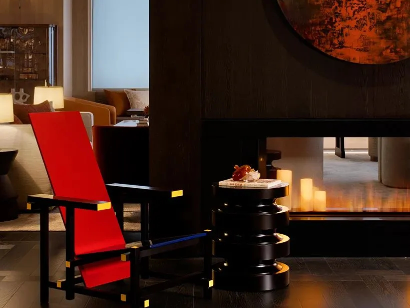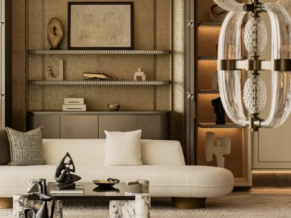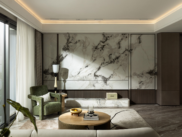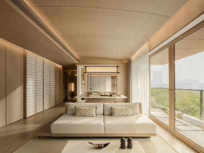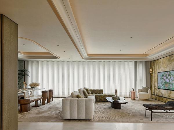 HWCD 设计团队从 Art Deco 风格里找灵感,去掉了传统几何的死板,提炼出适合现在高端人群审美的流线型设计。这种设计像海浪一样流畅,又能给人安全感,让空间成为让人放松的地方。