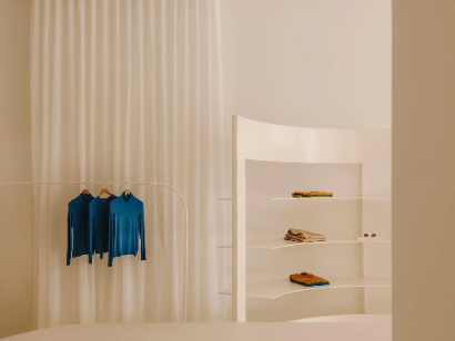 Maria Lucia Hohan携手Ciocodeica Studio,在布加勒斯特首开实体旗舰店,以晚装雕塑美学为灵感,跨界演绎时尚与表演艺术的沉浸式空间。步入店内,犹如登台,帷幕轻启,静待华章。装饰艺术风的直线舞台拱门,配以单色地毯,衬托服饰流线之美。