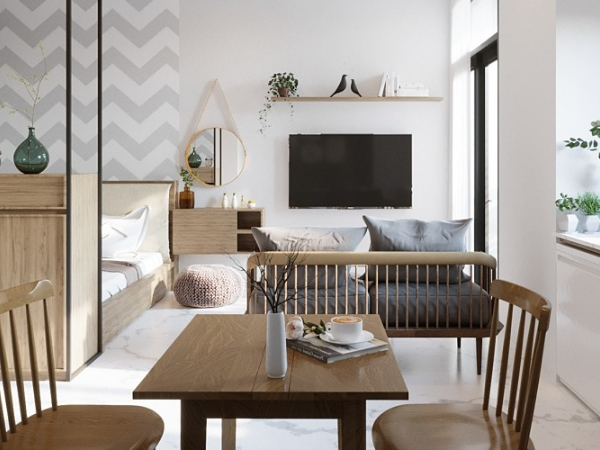 原木系简约小宅!越南26m²北欧风单身公寓 | DA VISUAL-欧模网