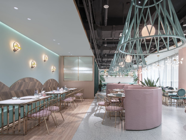 薄荷绿+裸粉色”小清新椰子鸡店 | 青水空间设计_欧模网